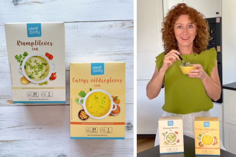 Ha pedig szeretnénk még több időt spórolni, és a leveseket az étkezésünk mindennapi részévé tenni, akkor az IdealBody új diétás leveseit két perc alatt is elkészíthetjük, akár a munkahelyünkön is, hiszen csak forró víz kell hozzá. Akár a hagyományosabb krumplilevest, akár az ínyenc fűszerezésű currys zöldséglevest választjuk, biztosak lehetünk benne, hogy teljes értékű főétkezést tudunk kiváltani vele. A levesek az IdealBody jól bevált diétás turmixaihoz hasonlóan ugyanis komplex tápanyagmennyiséget tartalmaznak, ezért tudnak egy étkezést kiváltani és nem étrend-kiegészítőként funkcionálni. Vagyis akár ebédre, akár vacsorára kiváló választás lehet, ha fogyókúrázunk, nem kell hozzá más ételt is fogyasztani, hisz nem csak finomak, de rengeteg tápanyagot tartalmaznak, alacsony kalóriatartalmúak, rostban gazdagok, ami mind-mind elősegíti a telítettség érzetét és a hosszabb távú súlykontrollt. A diétás leveseket az egészséges életmód és a fogyás támogatása érdekében fejlesztették ki.